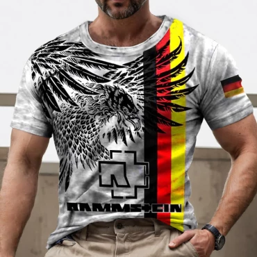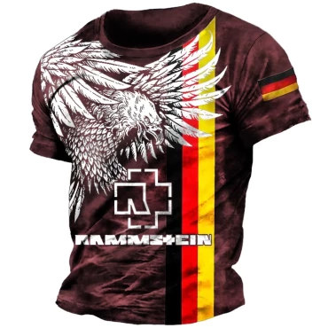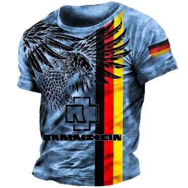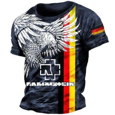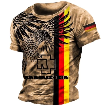 Men's Vintage Rock Band Chic Eagle German Flag Daily Short Sleeve Crew Neck T-shirt